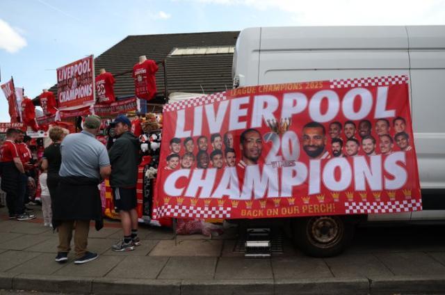 赛前安菲尔德周围已经满是夺冠的气氛,街角的涂鸦、球迷的衣着和横幅、路边的纪念品摊档,都已经为夺冠做好了准备。